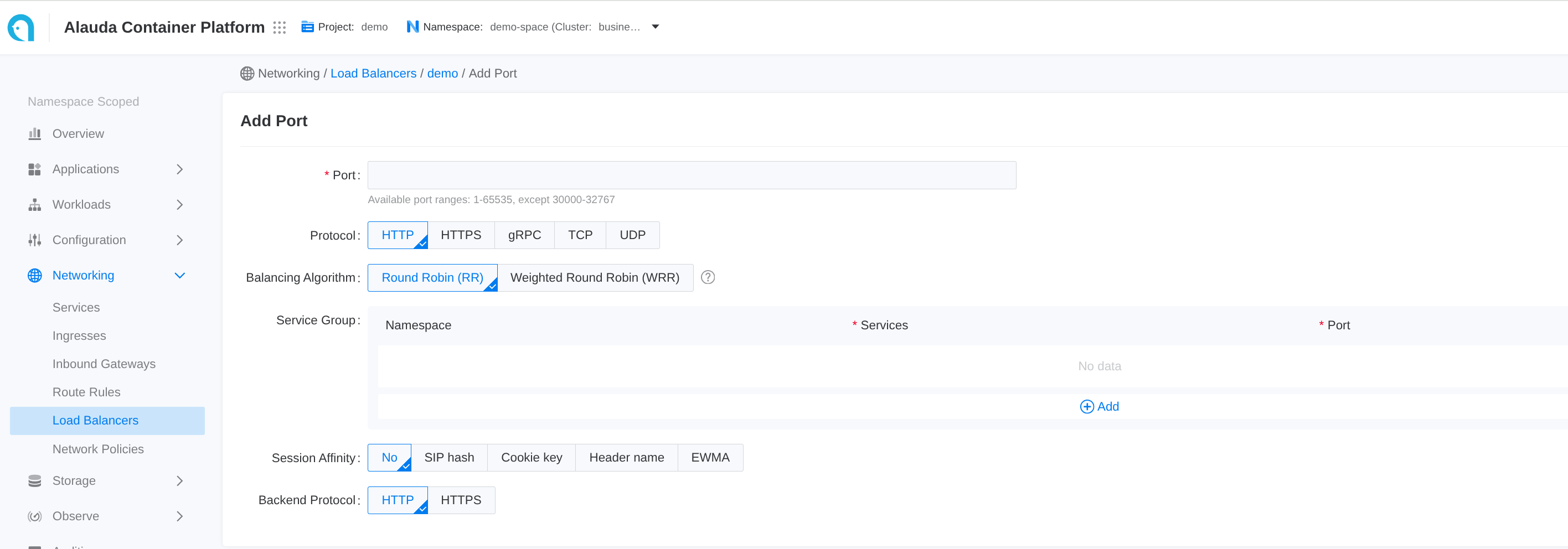 1. In the web UI, only users in the given project can find and configure this ALB.